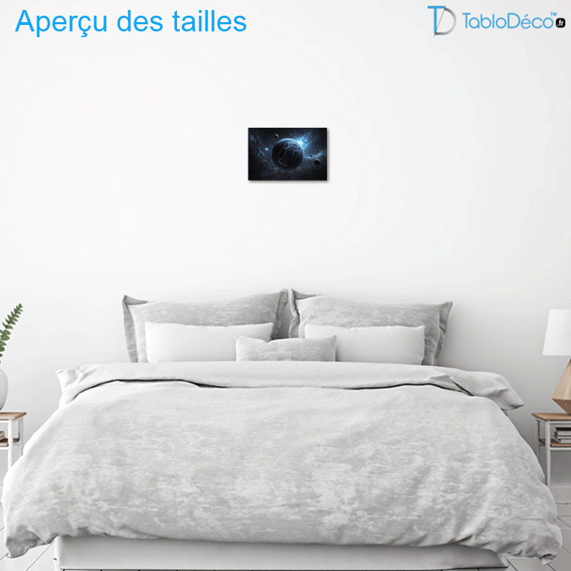 Ce tableau cosmique sur toile a été imprimé de façon à créer un effet visuel en 3D. Notre toile est disponible en plusieurs dimensions. Apportez des planètes dans votre chambre et sublimez votre décoration.