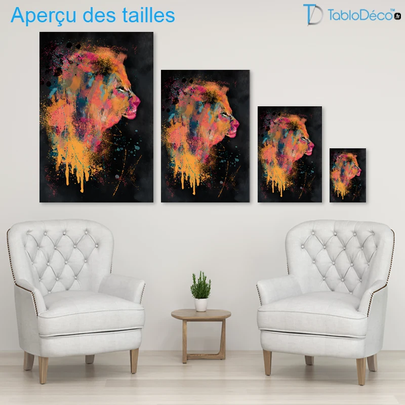 Plusieurs formats au choix : Cette toile abstraite à l’effigie d’un lion vous est proposée en 4 formats pour s’adapter à toutes les surfaces.