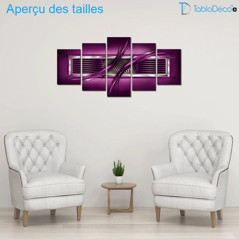 Découvrez ce très design tableau abstrait mauve et original en 5 parties. Plongez au cœur de cette toile unique qui saura sublimer votre décoration. Cette toile imprimée abstraite de grande qualité aux couleurs mauve et pourpre évoque la quiétude et attire la lumière pour un rendu exceptionnel.