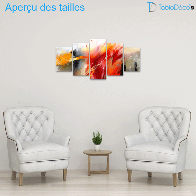 Catégories : tableau abstrait, tableau coloré, tableau 5 parties, tableau décoration