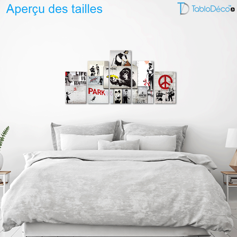 Catégories : tableau Banksy, tableau street art, tableau 5 parties, tableau décoration