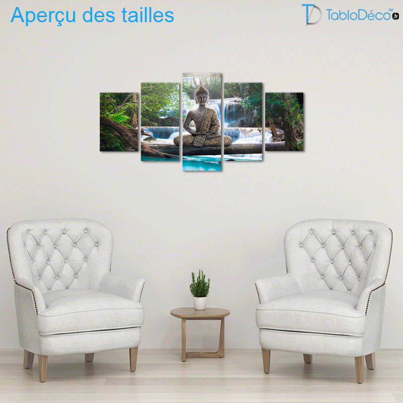 Tableau Bouddha Cascade Zen (5 panneaux)