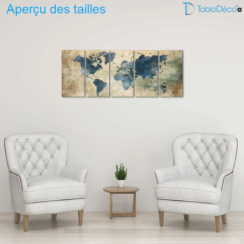 Catégories : tableau carte du monde, tableau 5 pièces, tableau décoration