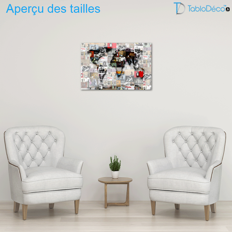 Catégories : tableau carte du monde, tableau Banksy, tableau décoration