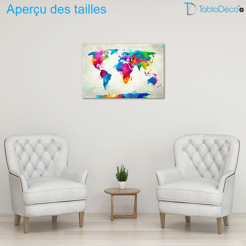 Catégories : tableau carte du monde, tableau coloré, tableau décoration