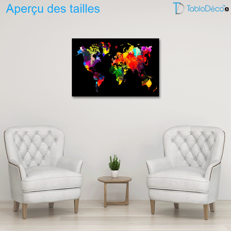 Catégories : tableau carte du monde, tableau coloré, tableau décoration