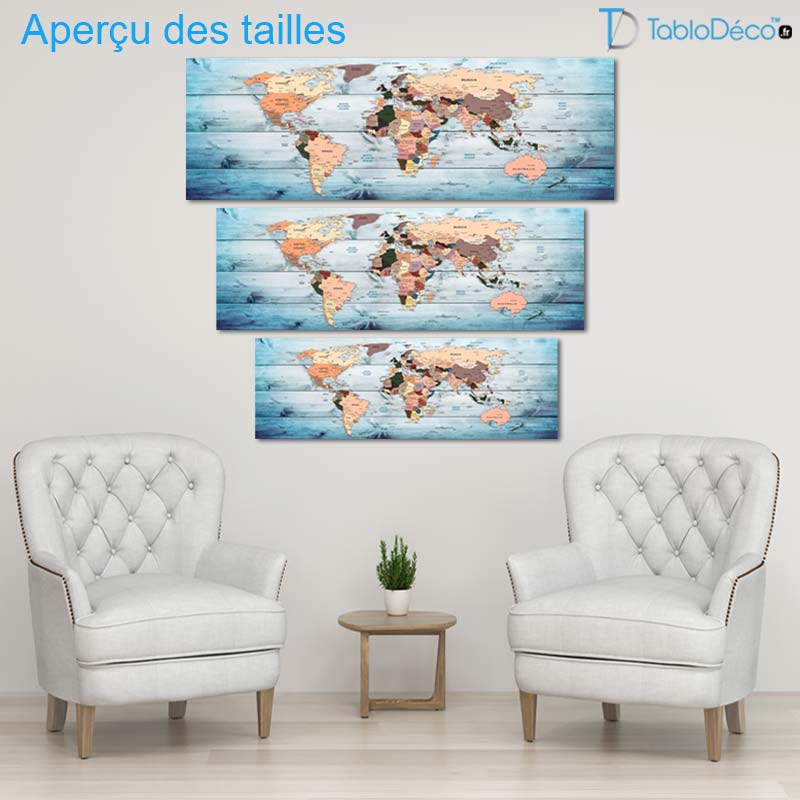 Catégories : tableau carte du monde, tableau bleu, tableau panoramique, tableau décoration