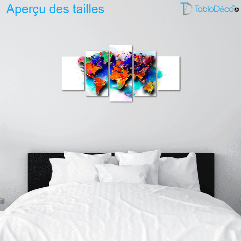 Catégories : tableau carte du monde, tableau coloré, tableau décoration