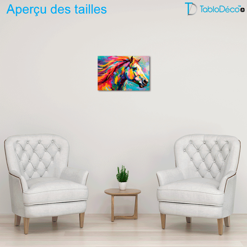 Catégories : tableau cheval, tableau multicolore, tableau animaux, toile imprimée, tableau décoration