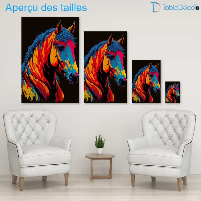 Montée à la main, il est imprimé avec une encre durable et résistante à l'eau. Ce cheval pop art complétera parfaitement votre déco d'intérieure. Faites-vous enfin plaisir avec cette toile pop art avec un cheval et dynamisé votre décoration intérieure.