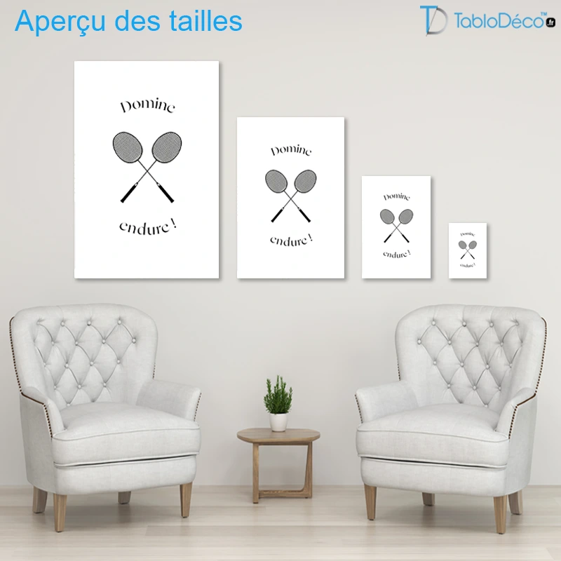 Vous souhaitez décorer votre intérieur à l’esprit de votre sport préféré ? Alors n’hésitez plus. Créé à l’occasion des Jeux Olympiques, ce tableau représente des raquettes de badminton noires et croisées. Le slogan « Domine, endure ! » insiste comme un mantra. Comme pour soutenir les sportifs du monde entier qui se rencontrent le temps de la compétition.