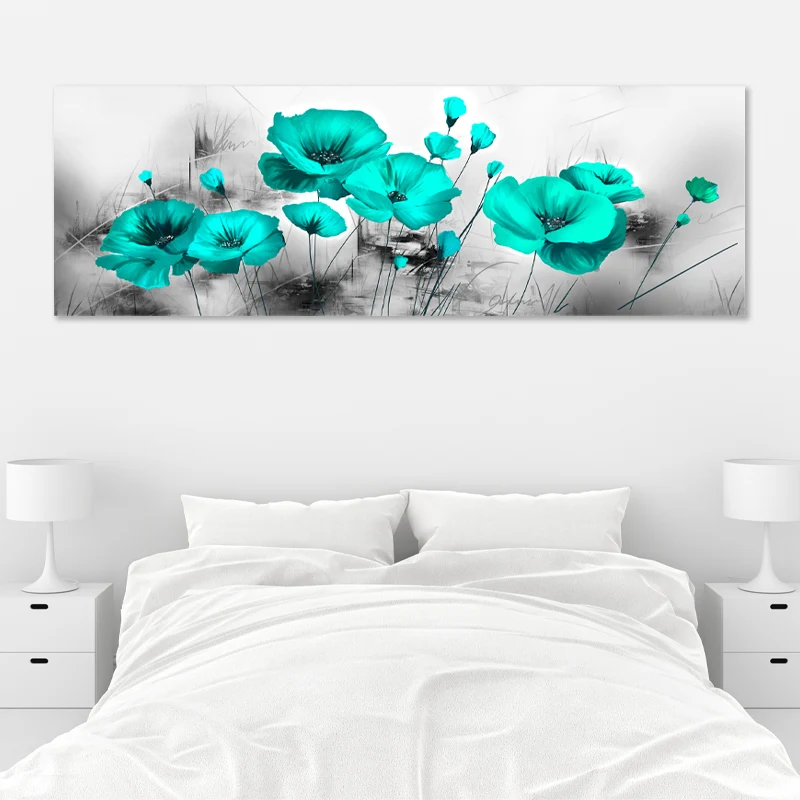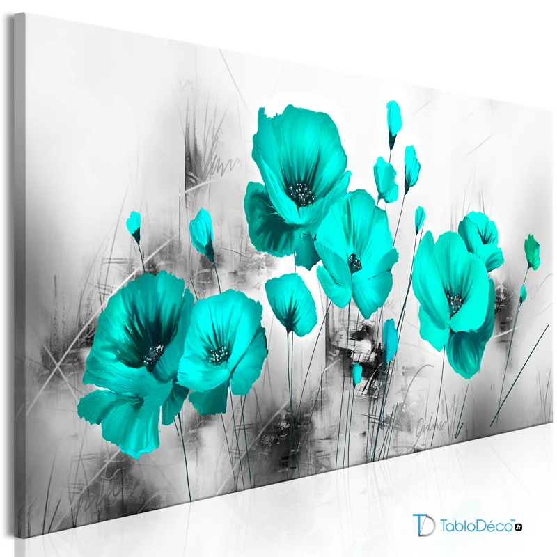 Tableau Fleurs Turquoise Coquelicots