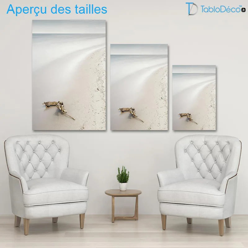 Les plages scandinaves sont parmi les plus belles et uniques au monde. Avec leurs côtes calme et rafraichissant, ce tableau décoratif va assurément apporter ça touche moderne et nature que vous désirez. On peu apercevoir sur ce tableau, une plage au sable blanc où une branche en bois est échouée, surement le calme avant la tempête. Ses couleurs jouent entre les nuances de blanc et de gris entre le ciel et la mer.