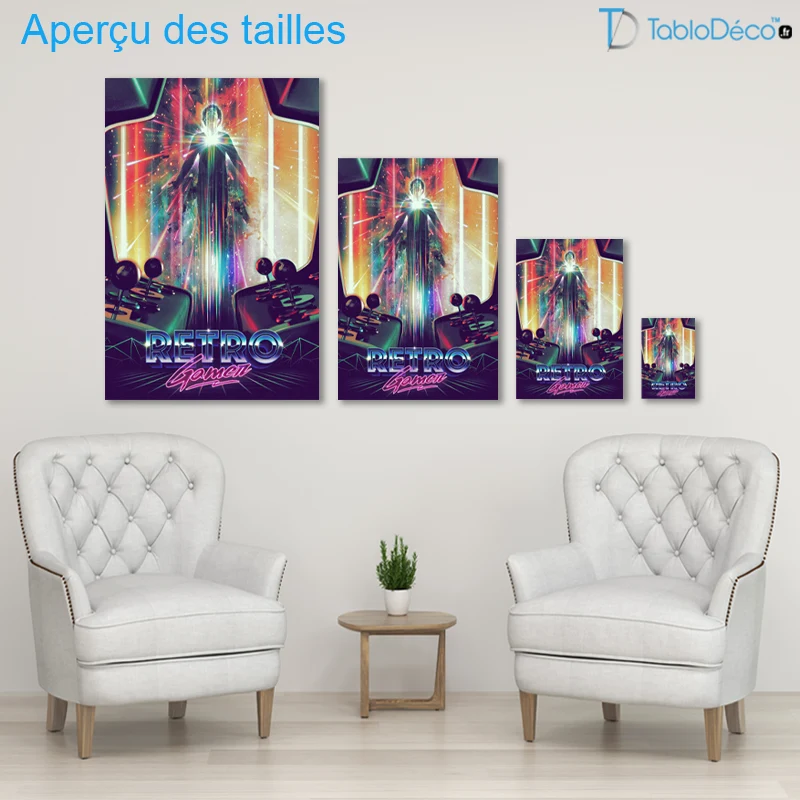 Cette toile rétro gamer trouve sa place dans une gaming room. Elle sera sublimée dans un décor contemporain relevé de touches années 80’.