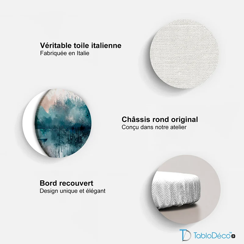 Type : toile imprimée format rond (toile vendue directement tendue sur le châssis)