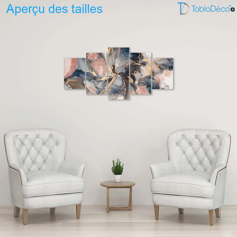 Type : toile imprimée sur 5 panneaux - vendues montées sur les châssis