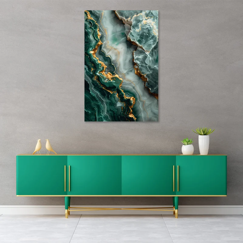 Apportez une dimension sophistiquée à votre intérieur avec ce tableau scandinave marbre vert.