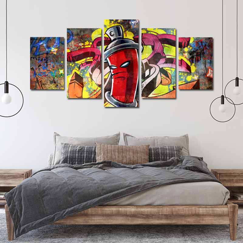Catégorie : tableau street art, tableau multicolore, tableau 5 panneaux, tableau décoration