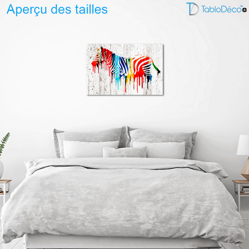 Découvrez ce tableau d'un zèbre coloré. Décorer votre intérieur nécessite savoir-faire et dextérité pour trouver les meilleurs tableaux de zèbres et les meilleures décorations qui correspondent à ce que vous désirez vous offrir. Les tableaux décoratifs vous aident grandement à embellir votre demeure pour un cadre hors du commun et tout à fait spécial.
